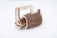 Dive into the secretive world of conspiracy, cryptography, and espionage with the intriguing UGears Combination Lock model kit. If you love uncovering secrets, stashing hidden treasure, or figuring out how things work then you'll love the cryptic Ugears Lock model. Did you know the first combination lock may have been invented in ancient Athens as early as 100 BC? The design was then updated in 1206 by the legendary engineer Al-Jazari, and again in 1841 by J.B. Gray. People have been using locks to protect their secrets for millennia, and for just as long as they've been using them they've been tinkering with them. Today, you can join the ranks of those historical tinkerers and learn all about the intricacies of combination lock systems by putting one together yourself! Using real-life mechanical principles and designs, this sophisticated model provides a first-hand look into the inner workings of a combination lock. See how each piece works together as you put them in their proper place. Uncover the mystery of lock-work and become the master of secrets - both keeping and finding them. A customizable 3-digit system allows you to craft over 1000 number combinations. Challenge your friends, family, or classroom to crack the code! Learn and teach yourself and others about combination theorem to figure out the three numbers from scratch or hide clues in an exciting secret agent scavenger hunt. What secrets will you hide with the help of your mechanical combination lock puzzle? The model consists of two parts, a lock, and a small storage compartment. Stash your hidden treasure in the compartment to keep it safe from others or to motivate would-be codebreakers with the promise of a prize. For personal use, the compartment can hide keys, cash, or other small items. The model even has a convenient eyelet for an easy fixture to a backpack, purse, or another bag. The UGears Lock model can be used as an educational tool for kids or a fun project for adults. Model kits can help with the development of logical thinking, enhance attention and concentration skills, and help build a habit of attention to detail. The learning even continues after the model is finished! Teach mathematics, methodical thinking, and codebreaking by challenging kids to decode the customizable 3-digit combination code and then reward them by hiding goodies in the storage compartment. The wooden combination lock model is constructed from 34 eco-friendly wooden pieces which can be assembled in under 3 hours. The model required no messy glue and no cumbersome tools to assemble, making for a hassle-free construction with the help of the detailed step-by-step instructions included. This easy, lightweight, fully self-contained kit is the perfect gift for tinkerers, learners, and secret-keepers of any age. Model size: 3.8 x 2.6 x 3.9 Package size: 14.6 x 6.7 x 1.2 in Number of parts: 34 Level: Easy Assembly Time: 1.5 hours Recommended Age: 14+ Made in Ukraine