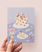 Jolie carte de voeux sucrée. Table festive avec gâteau d'anniversaire et jolies fleurs.