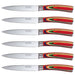 Liven up your dining table with the Baltique Marrakesh Collection 6-Piece Steak Knife Set! These beautiful stainless steel knives offer precise and high-quality cuts while also sharpening the look of your dining table arrangement. It features a beautifully crafted layered birch wood handle that provides a splash of indulgent color and sits comfortably in your hand, thanks to its slightly curved body. The vibrant color scheme was inspired by the bright and bustling marketplaces of the Moroccan metropolis of Marrakesh.