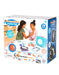 A thermometer, a finger oximeter, an otoscope, a reflex hammer, a stethoscope with real heartbeat sounds, a box of bandages, a syringe, health charts, a light-up x-ray panel, and more, all stored in a snap-shut case...