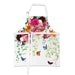 A colorful burst of irresistible flowers and butterflies evoke the abundance of a summer garden. Our apron ties at the waist and has metal double D-rings so you can adjust the strap at the neck. Made of sturdy 100% cotton.