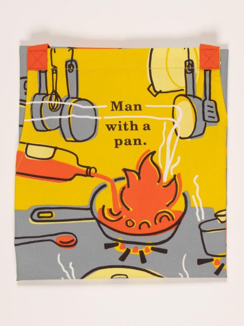 Blue QWatch out, guys! This man's got a pan and he's not afraid to use it. Or, at least, if he is, he's not letting on. Super-insulated. 100% cotton.