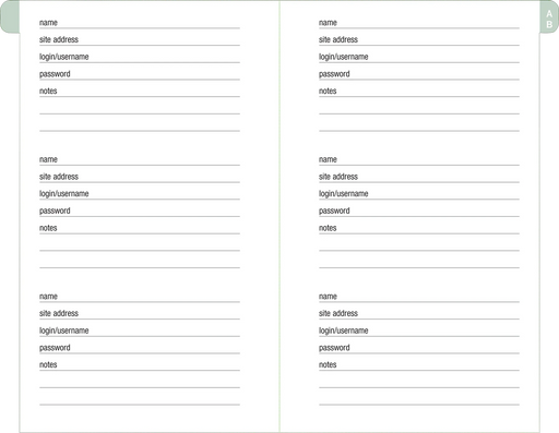 Peter Pauper PressTired of losing track of the websites you visit, along with their usernames and passwords? Now you can keep them all in one convenient place! This...