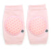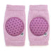 Protective kneepads designed with non-slip grip and extra padding to prevent scrapes and bruising. Designed to boost confidence for crawling on hard surfaces. Perfect for use on carpet, hardwood floors, and even outdoors Size (one size fits most): 6” x 3.5” Recommend Age: 6 months+ Colors available in Pink, Light Pink, Purple, Blue, and Heathered Light Blue. Color chosen at random when shipped.