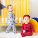 Piggies out with easy-on, easy-off, coveralls! A soft, stylish wardrobe staple ideal for indoor or outside play, and snoozin the night away. Perfect for nibbling toes, crawling, or going to market. Simply open the outfit, insert baby, and the smart magnetic fasteners practically close themselves! Machine wash as directed.
