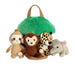 Baby Talk is a line of interactive plush toys made, especially with your babies needs in mind. Easy to take on the go and store! Each animal makes a different sound, rattles, or squeaks. This set features a treehouse. It includes a sloth, monkey, jaguar, and elephant that make noise, rattle or squeak. The elephant makes a trumpet sound, jaguar roars, monkey squeaks, and the sloth rattles. Each set is roughly 6 inches in size, while animals are 2-4 inches each.