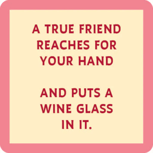 Drinks On Me Coasters“A true friend reaches for your hand, and puts a wine glass in it.” Coasters are 4”x4” and made with resin with a cork backing and round corners. ...