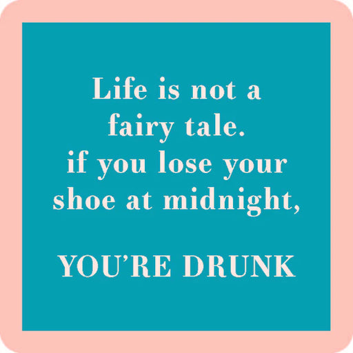 fabulagifts“Life is not a fairy tale. If you lose your shoe at midnight, you’re drunk.” Coasters are 4”x4” and made with resin with a cork backing and round ...
