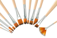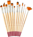 Set of 12 brushes includes a versatile range of shapes and sizes for fine detail work, broad-area coverage, and texturing.