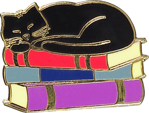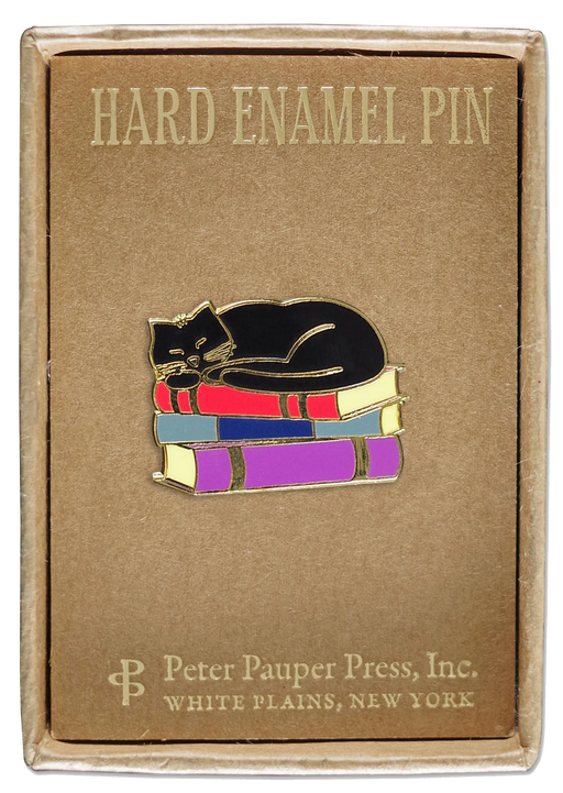 Peter Pauper PressProclaim your love for cats and books with this adorable pin, depicting a cute black cat curled up on its favorite tomes. Hard enamel pin is made ...