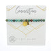 Dragon Jasper. Our Ethos Bracelets are constructed with colorful gemstones on an elastic band. Each bracelet is adorned with a hand stamped charm and is mounted on original letter press card with metallic gold detailing! Each card shows a hidden message beneath the bracelet, making it the perfect sentimental gift.