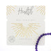 Amethyst. Our Ethos Bracelets are constructed with colorful gemstones on an elastic band. Each bracelet is adorned with a hand stamped charm and is mounted on original letter press card with metallic gold detailing! Each card shows a hidden message beneath the bracelet, making it the perfect sentimental gift.
