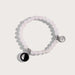 Moonstone Beaded Bracelet in white is the perfect accessory to compliment any outfit. It has a soft, feminine feel and an elegant design that will take your look from day to night with ease. Moonstone has been worn over the ages to encourage inner growth and strength. It is a symbol of feminine energy and intuition, and is said to be an excellent stone for remembering dreams due its connection with the Moon's cycles. In the past, moonstones were placed in water to increase their healing powers for high fevers or kidney stones. The moonstone bead is a stone of new beginnings, for it takes its wearer through the phases of life. Here, Moonstone beads circle the wrist paired with our awe-inspiring lunar charm that lights in darkness like the moon itself, calling to mind a memory that’s held in your heart. Wear this moonstone bracelet as an inspiration for what awaits you on your journey into the night sky. This beautiful moonstone bracelet can be worn alone, or stacked with other bracelets. It is made of white semi precious moonstone beads that are strung on elastic, making it easy to put on and take off without the use of clasps or fasteners. The bead's soft glow will light up your wrist in any setting- whether at home, out for a night on the town, or hitting an after party. Beautifully-crafted and infinitely intriguing, you’ll love this moonstone bracelet more each time you wear it. Choose it now for yourself or someone special. Simply select a date below and we’ll do the rest. Your bracelet will arrive in its own signature gift box complete with a card describing the moon phase you’ve selected. – 1/2" diameter silver-plated pendant – 13mm moon phase image – 7" circumference – White moonstone beads
