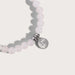 Moonstone Beaded Bracelet in white is the perfect accessory to compliment any outfit. It has a soft, feminine feel and an elegant design that will take your look from day to night with ease. Moonstone has been worn over the ages to encourage inner growth and strength. It is a symbol of feminine energy and intuition, and is said to be an excellent stone for remembering dreams due its connection with the Moon's cycles. In the past, moonstones were placed in water to increase their healing powers for high fevers or kidney stones. The moonstone bead is a stone of new beginnings, for it takes its wearer through the phases of life. Here, Moonstone beads circle the wrist paired with our awe-inspiring lunar charm that lights in darkness like the moon itself, calling to mind a memory that’s held in your heart. Wear this moonstone bracelet as an inspiration for what awaits you on your journey into the night sky. This beautiful moonstone bracelet can be worn alone, or stacked with other bracelets. It is made of white semi precious moonstone beads that are strung on elastic, making it easy to put on and take off without the use of clasps or fasteners. The bead's soft glow will light up your wrist in any setting- whether at home, out for a night on the town, or hitting an after party. Beautifully-crafted and infinitely intriguing, you’ll love this moonstone bracelet more each time you wear it. Choose it now for yourself or someone special. Simply select a date below and we’ll do the rest. Your bracelet will arrive in its own signature gift box complete with a card describing the moon phase you’ve selected. – 1/2" diameter silver-plated pendant – 13mm moon phase image – 7" circumference – White moonstone beads