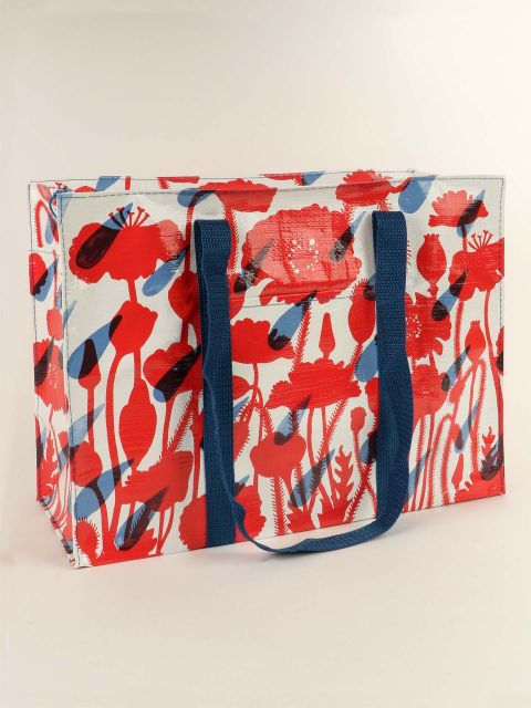 Blue QRaindrops on poppies, and bags over shoulders... these are a few of my favorite things. 95% post consumer recycled material. 11"h x 15"w x 6.25"d Q...
