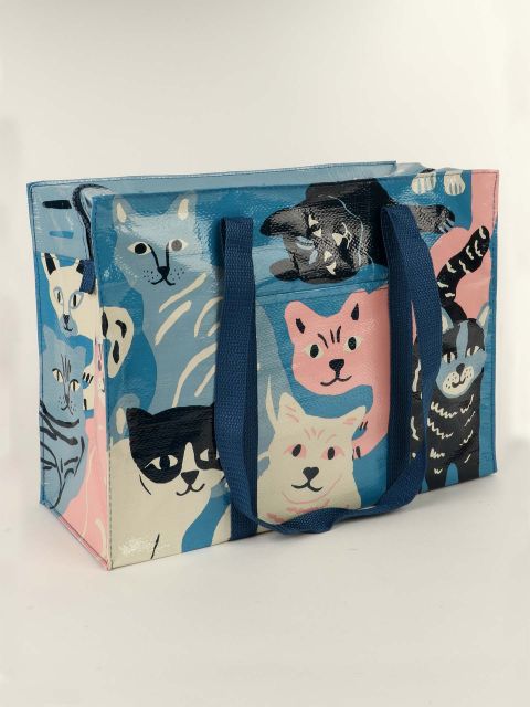 Blue QThose whiskers! Those eyes! Two sets of handles! So many great features, I can't pick my favorite! 95% post consumer recycled material. 15"h x 16"w...