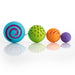 Each sphere engraved with vivid textures - Dots, lines, ribs, swirls.