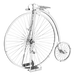 This early bicycle design called the Penny-farthing was first produced about 1870. It used an enlarged front wheel instead of gears to create greater speed and a smoother ride. It was the first machine to be called a bicycle.