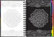 The right-hand mandala is on a black-coated page. Trace its white outlines with the fine-tip stylus included to reveal the amazing colors beneath.