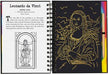 Art activity book contains 10 black-coated gold and silver glitter pages, 10 black-coated colorful swirl pages, 20 illustrated pages, 20 extra pages for sketching and doodling, and the wooden stylus for drawing.