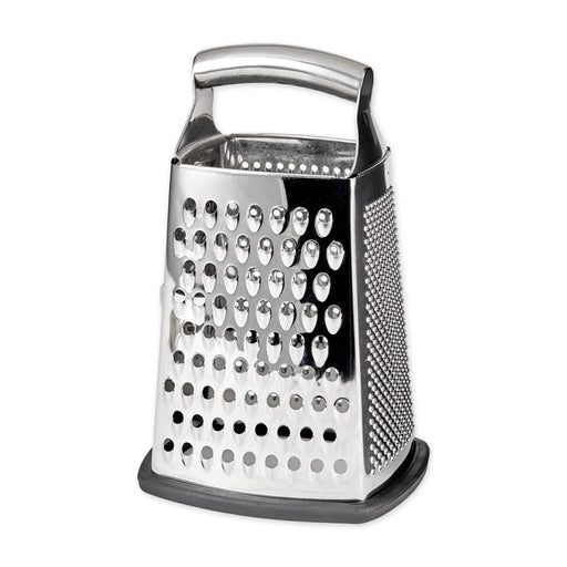 RSVPThis deluxe grater features three grating surfaces and a slicing edge. Made of 18/0 stainless steel with a nonslip silicone base and a large, comfo...