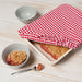 Trust your leftovers to the reliable and reusable Gingham Baking Dish Cover by Now Designs. The durable design in a fresh red-and-white gingham pattern makes protecting food simple and looks pretty at picnics on baking dishes and platters.