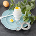 Gently squeeze the handle and a ring of teeth will pierce and remove tapered end of soft-boiled egg.