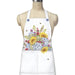 Machine wash in cold water on gentle cycle. Use a color guard mild detergent. NO bleach or bleach alternatives (optic brighteners). Air dry or tumble dry, with no heat. Iron from reverse side only, never directly on the image. Designed, packaged and printed in the USA on aprons made in the Dominican Republic.