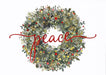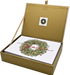 A gorgeous wreath of evergreens, eucalyptus, mistletoe, and holly serves as the backdrop for the word ''Peace'' on this elegant greeting card. Premium card set includes 20 cards, 21 envelopes, and a matching keepsake box. Larger cards provide ample space for personal messages. Card exteriors are embellished with eye-catching foil in red and gold. Smooth card interiors are uncoated. Quality card stock supports pen beautifully. Inside greeting: Wishing you peace and joy throughout the season The white stationery envelopes included are self-sealing for your convenience -- simply peel and stick. Sturdy reusable box features a reproduction of the card design on the lid. A smaller image is replicated inside. Box comes with a ribbon tab, ribbon hinge, and magnetic closure Perfect for storing notes, holiday mementos, postage stamps, and more! Cards measure 7'' wide x 5'' high.